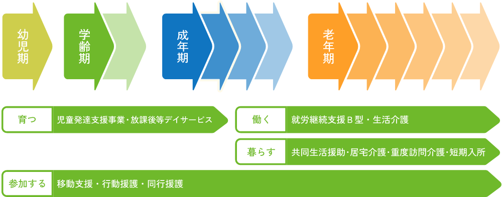 幼児期〜成年期まで、幅広い年齢層の利用者さんを支援します
