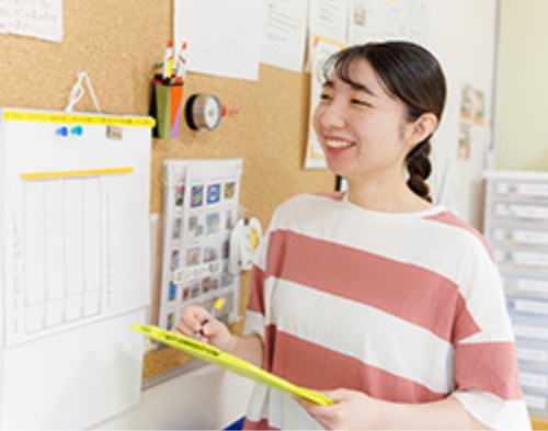 利用者さんの支援計画立案や支援を円滑に進めるための準備、環境整備を行う仕事です。個別活動の教材作成、外出イベントの企画準備、関係機関との連絡調整などを担当します。入社2年目以降には国への請求業務、職員の業務シフト調整など、法人全体の運営に関わる業務も分担して行います。