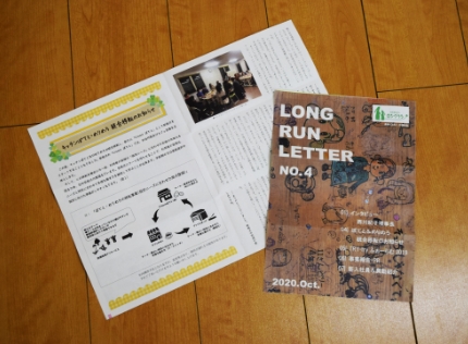 法人の活動や利用者さんの様子を地域に向けて発信する広報誌を発行。利用者さんの作品や日常の様子などを掲載し、地域の方々にロングランの取り組みを広く発信しています。